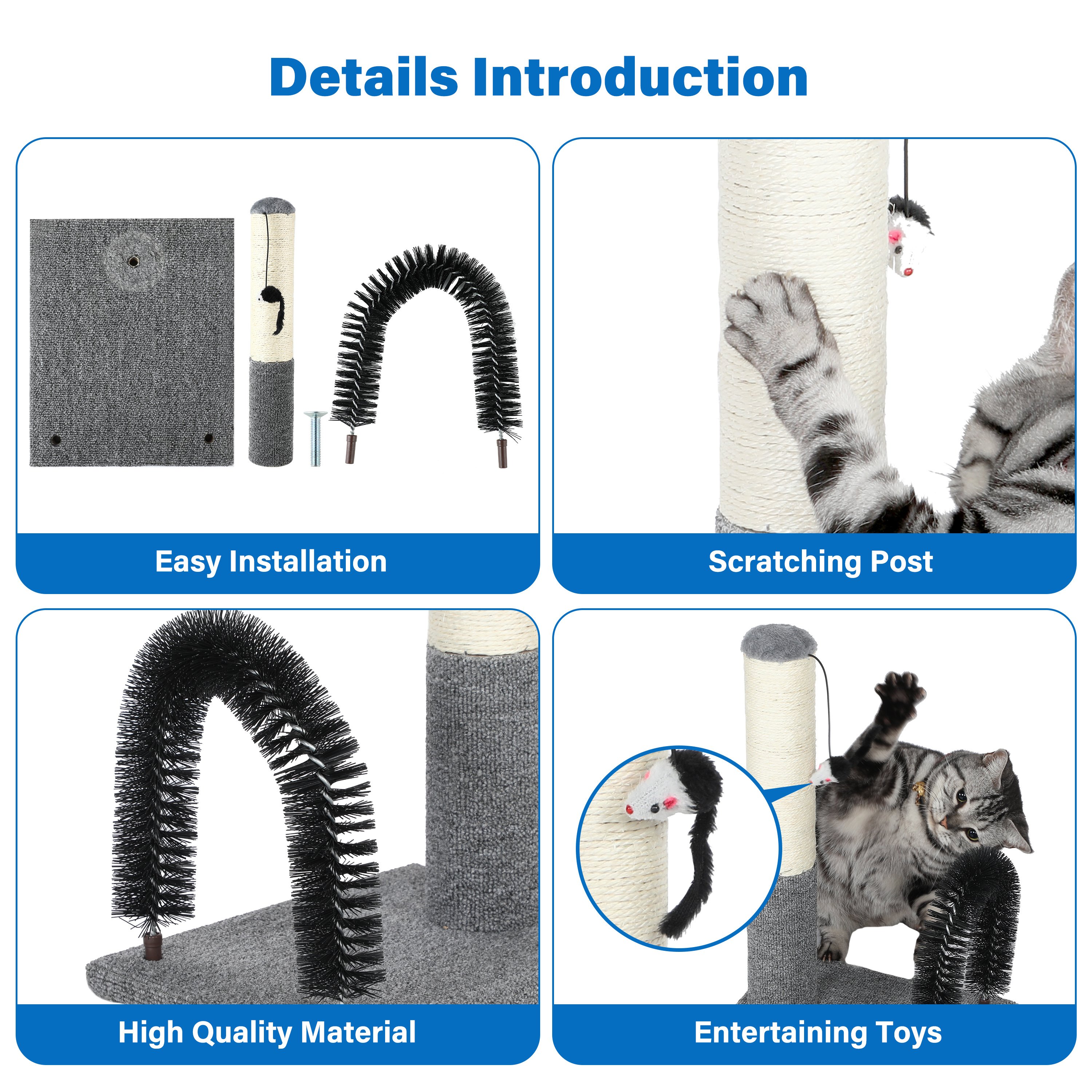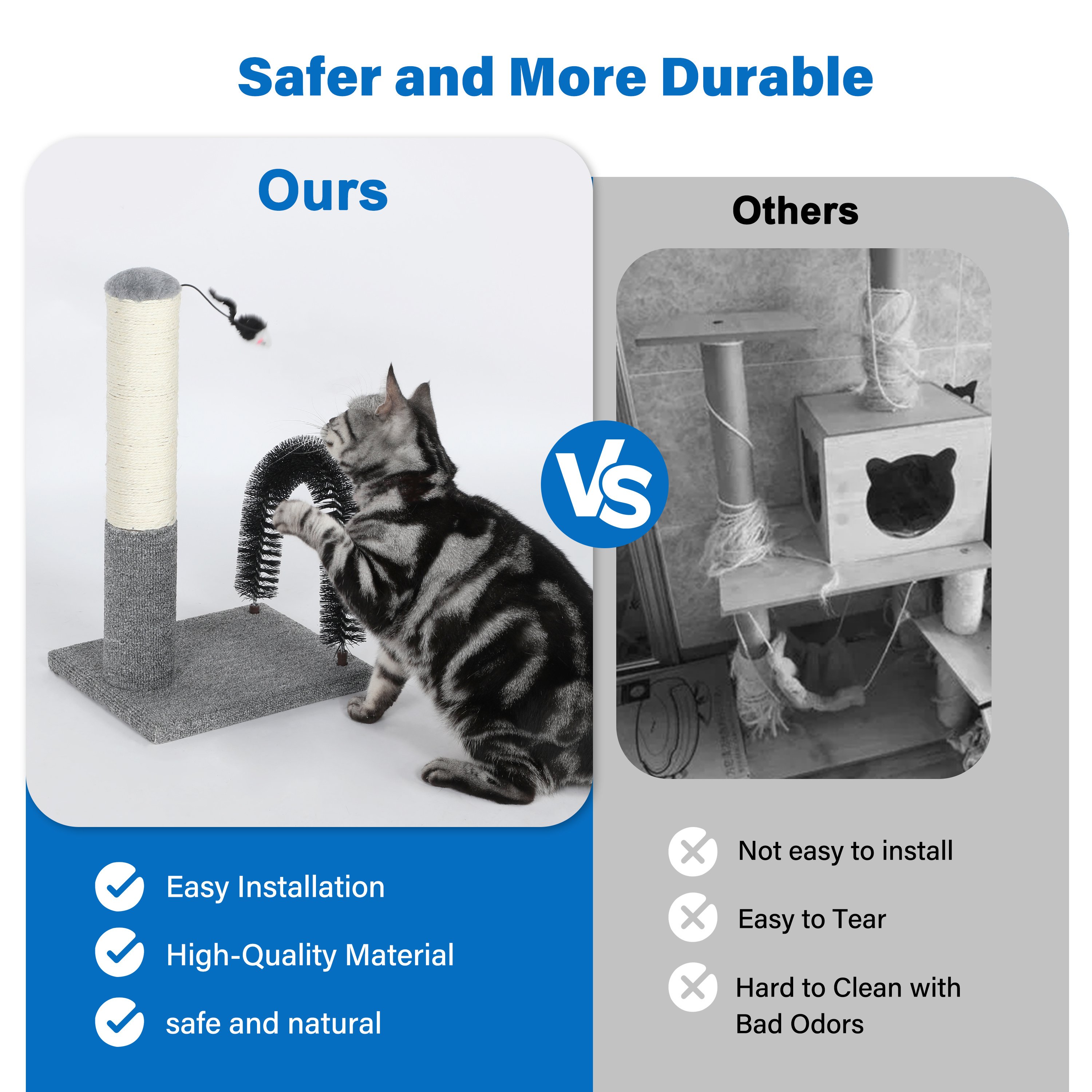 [3 IN 1 Cat Scratcher Post Pad]Cat Grooming Brush, , Sisal Scratching Post, Entertaining Toys. For Detachable Arch Cat Self Groomer design, it can help stop hair shedding everywhere. Removable Arch Cat brush can also be used as a cats back grooming massager. Sisal scratching pad and post can help your keep your cat's paw healthy. Spring Ball with Bell, as one of cat's favorite toys can attract your furry baby's attention, making your kitty happy and healthy.