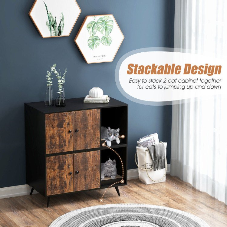 -Double door cabinet is perfect to hide cat litter box or place cat bed