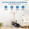[Jute and Carpet Surfaces]: Made of compressed wood with soft carpeted surfaces and posts wrapped in jute rope, the cat trees provide durability and cat-friendly surfaces. Includes a Medium multi-level cat tree made of sturdy wood covered with carpet.