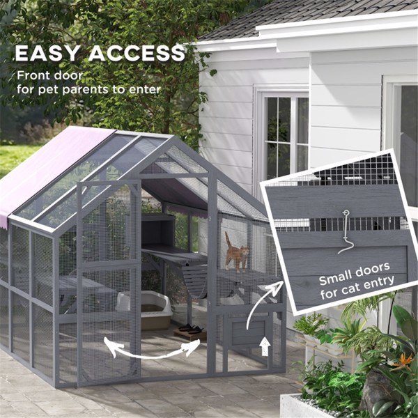 • - Spacious 56 ft² area comfortably fits 3-6 cats, each up to 16 lbs.