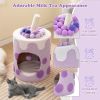 1.Creative Milk Tea Appearance: Featuring pearl/taro ball decorations, straw-shaped post, vivid cream, simulated chocolates/cookies and milk tea barrel shape, the cat tree presents an innovative appearance that will captivate anyone who lays an eye on it. Thus, it is the perfect addition to elevate your room style.