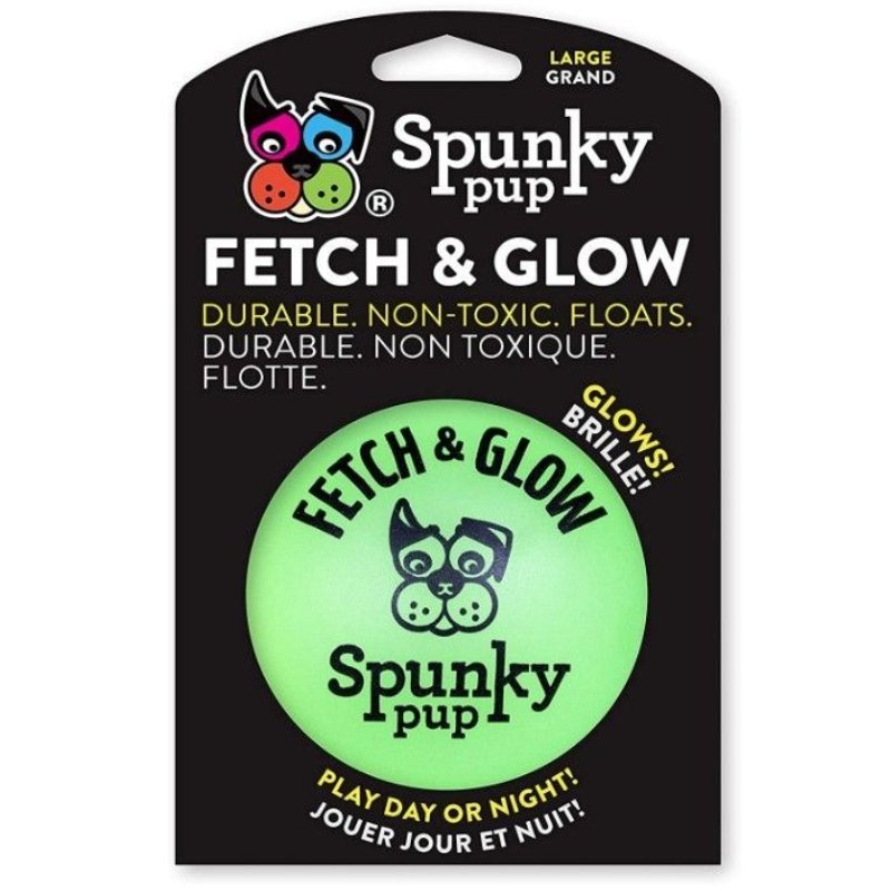 Spunky Pup Fetch and Glow toys will keep your dog running, jumping and fetching even after the sun goes down. This soft, durable, non-toxic toy is great for indoor or outdoor play, just expose the ball to light and watch it glow in the dark. This soft non-toxic toy is waterproof, easy to clean and it floats! Spunky Pup is proudly made in the USA